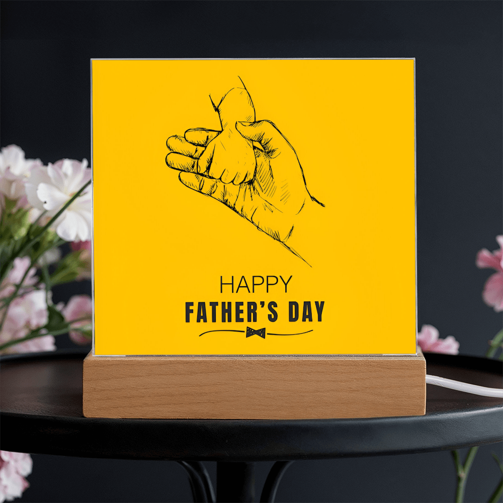 Your plaque will be crafted from premium acrylic with a professionally printed design for a polished look. It comes with a stylish wooden LED base, and you can choose between a USB plug-in option OR a cordless battery-operated option (requires 2 AAA batteries, not included). Both LED bases feature 7 vibrant colors, allowing the user to customize the lighting with various color changes and dynamic cycles.