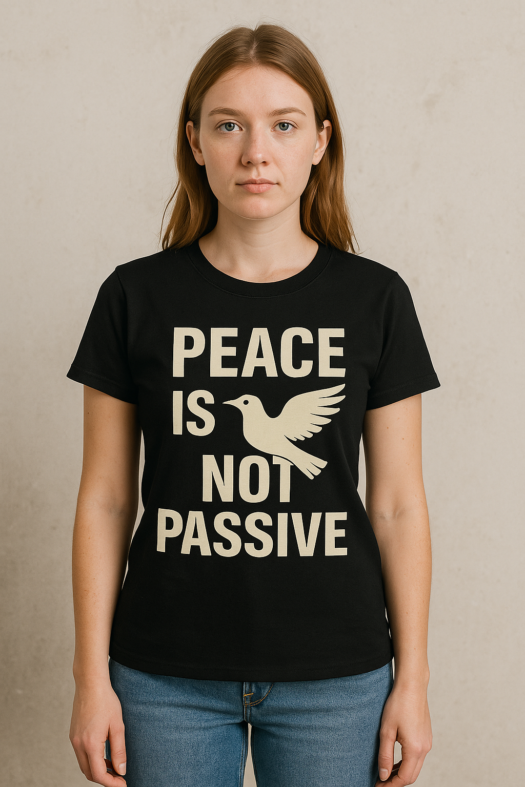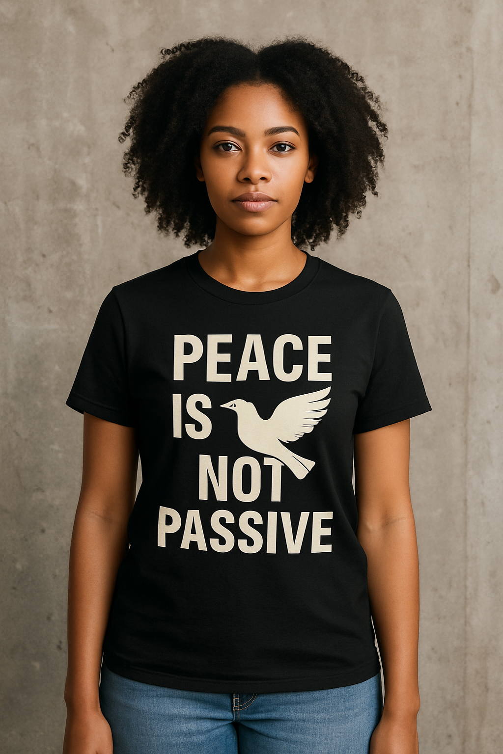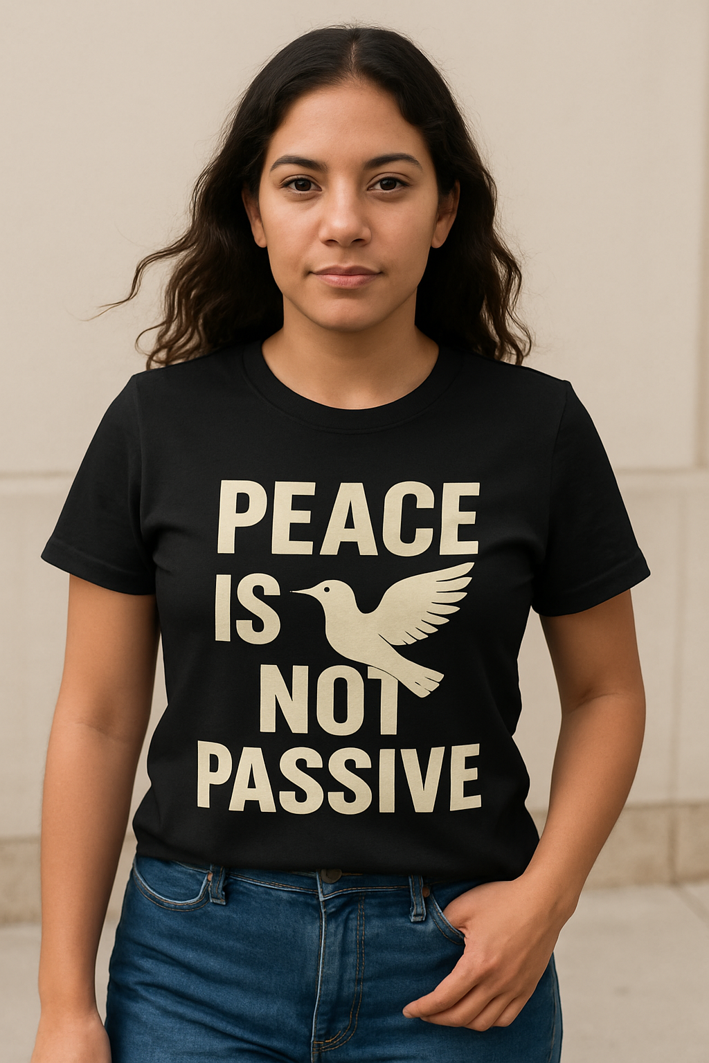 “Peace Is Not Passive” Graphic Tee – Bold Activist Shirt for Protest, Marches, or Everyday Wear