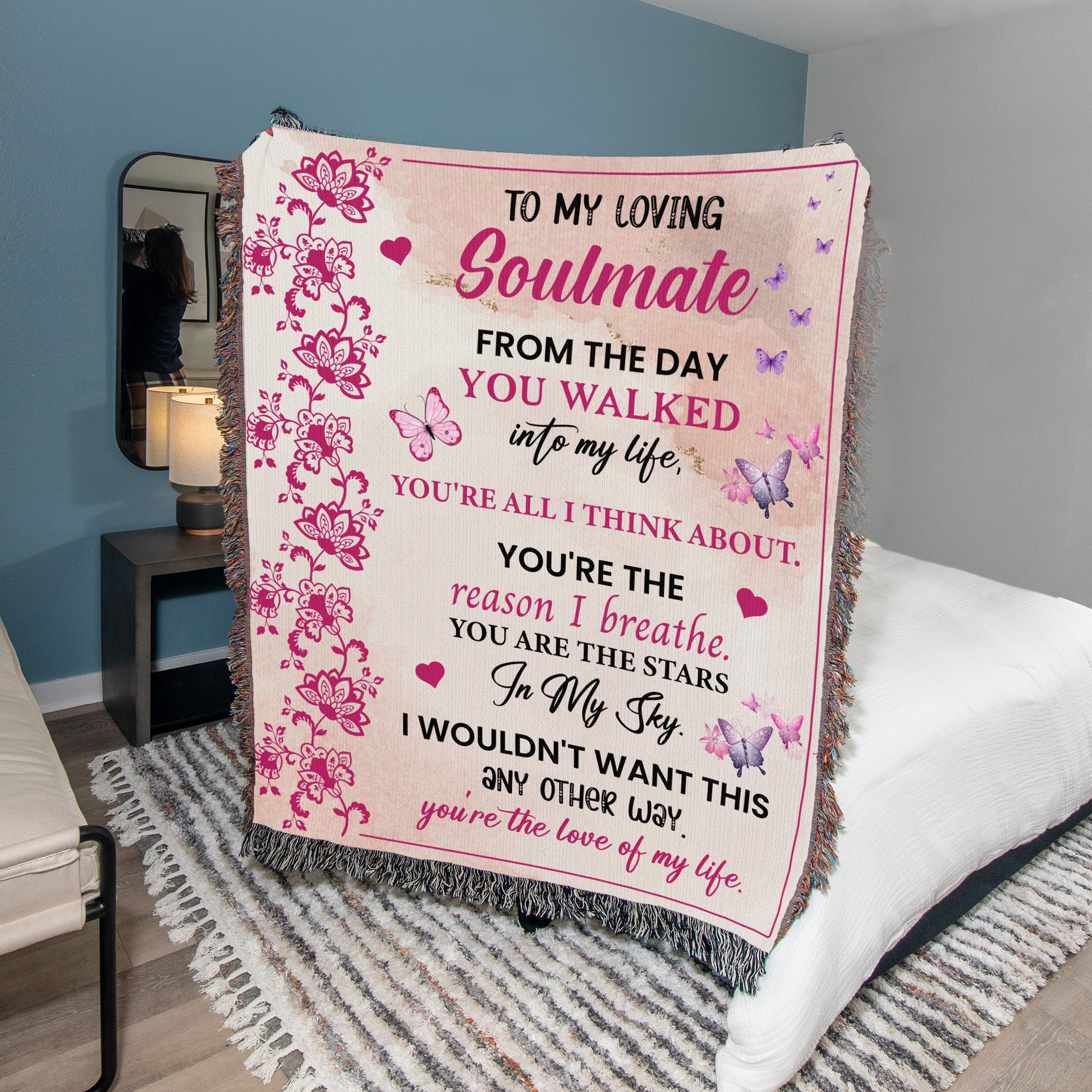 To My Loving Soulmate Premium Black Sherpa Blanket | From The Day you Walked Into My Life |50x60